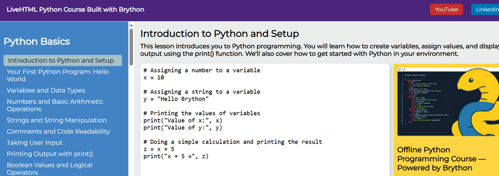Interactive Python Course with Brython — Live HTML & Python in Your Browser